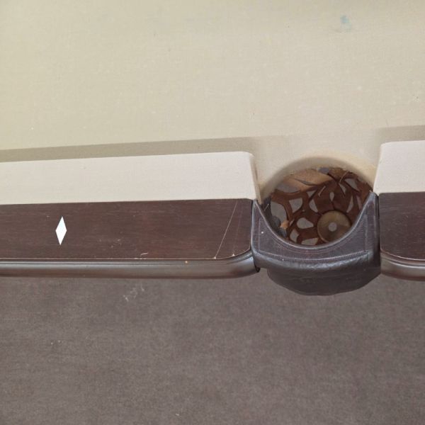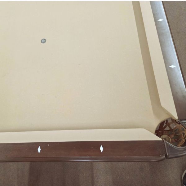 Made with solid Ash Wood engineered woods in Moka Brown finish, Ball and Claw solid wood legs, natural quarried 1 inch slate, genuine leather pockets and brand new Red Andy 600T Club stain protected billiard professional style fast cloth. Includes a one year warranty and a used billiard accessory kit.
