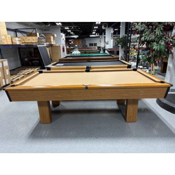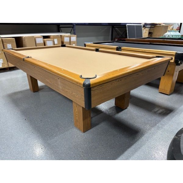 Made of engineered wood with very durable Formica laminate simulated Oak finish, inset pockets and Championship Invitational Teflon protected felt cloth.
