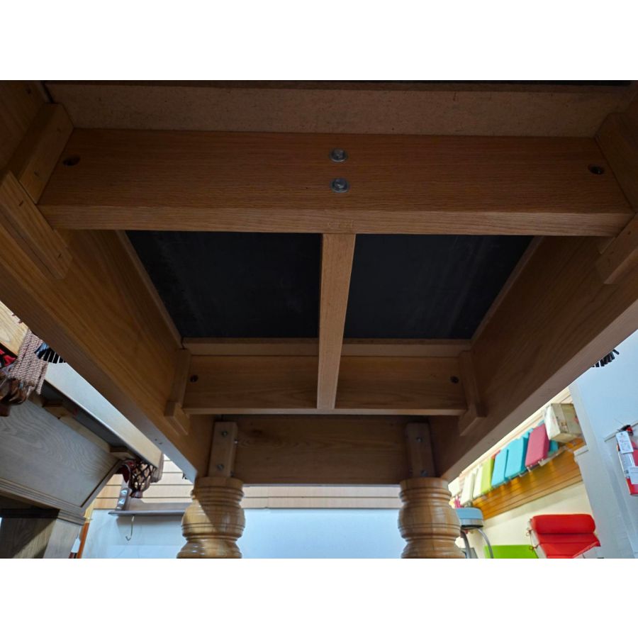 Canada Billiards 7 foot Solid Hardwood used pool table with 1 inch slate, leather pockets and choice of cloth colour Code: TABLELIQ131 Made of solid hardwood and engineered woods, leather pockets with fringe. Includes a one year warranty and your choice of over 24 Teflon protected billiard sloth and a used billiard accessory kit.