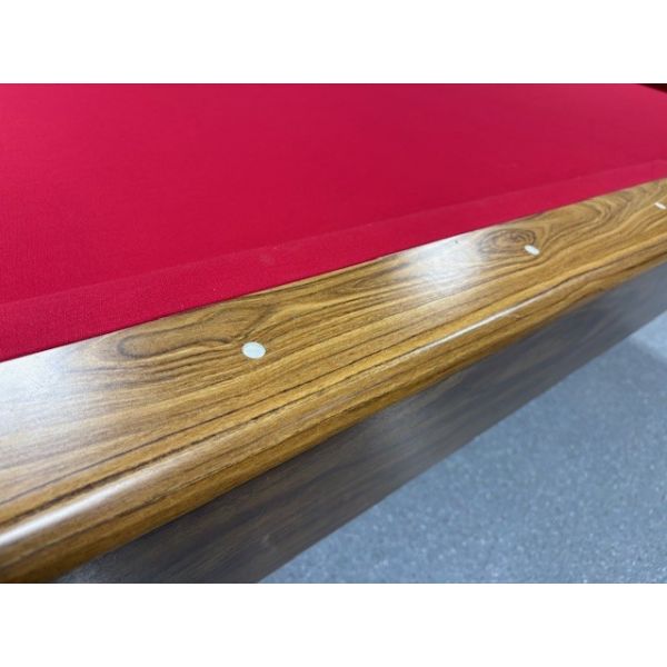 Made with engineered woods with Formica faux wood finish, inset pockets and ANDY600T billiard cloth fabric with stain protection.