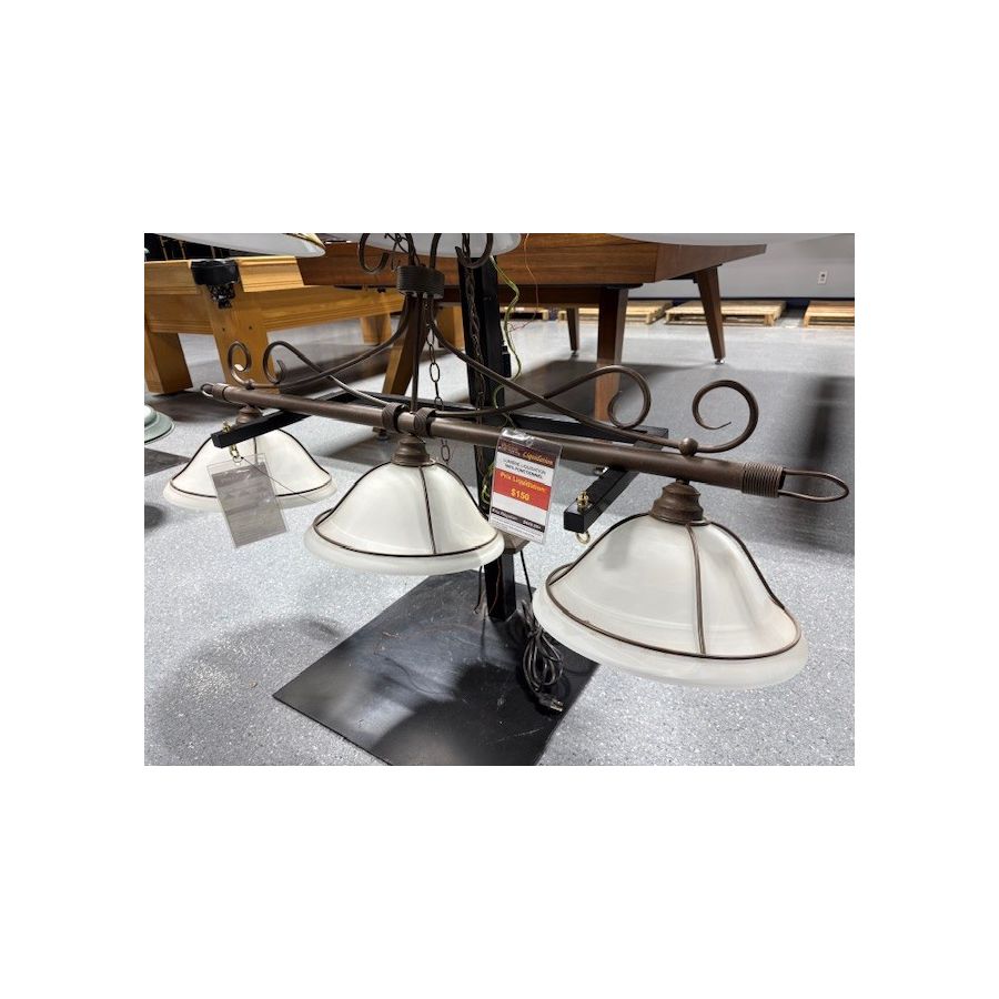 Three white frosted glass shade billiard pool table lamp for warm lighting and classic look.