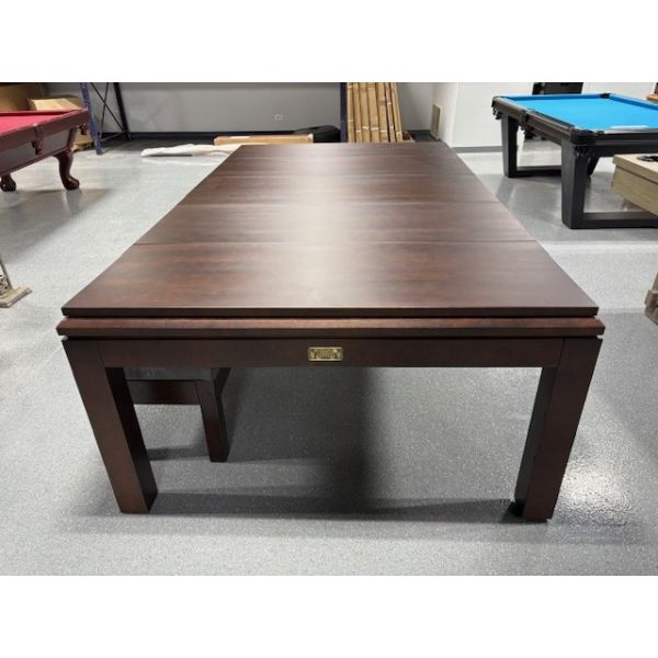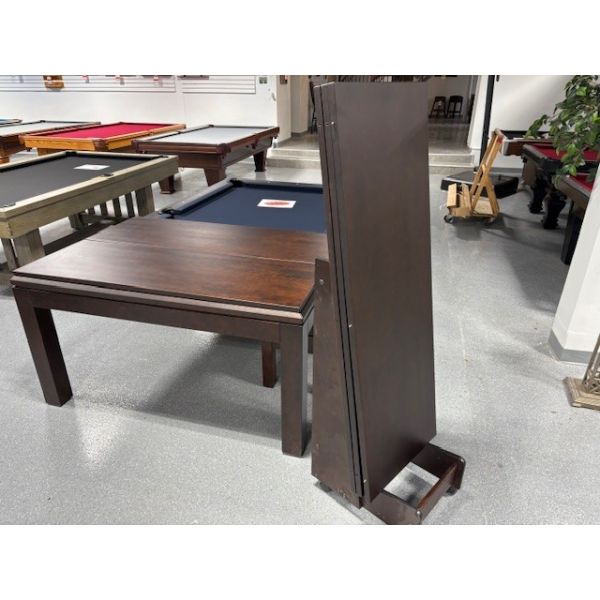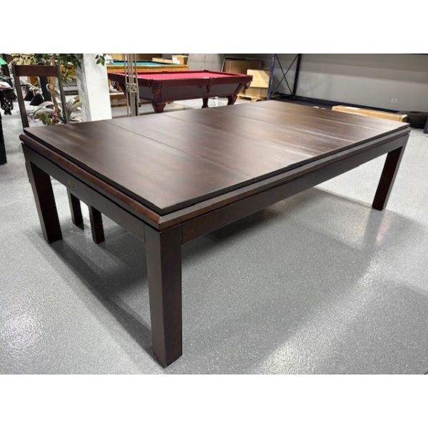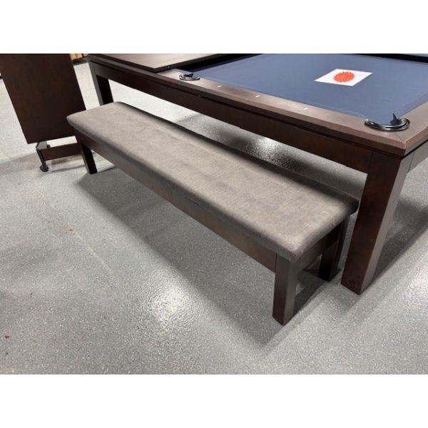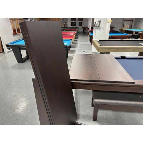 Includes a 1 year warranty, brand new Navy Blue Teflon protected billiard cloth, a dining top and bench as well as a used billiard accessory kit.