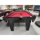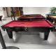 Made with 1 inch thick slate, hardwood and engineered wood in Black finish, tapered legs, genuine leather black pockets and Burgundy billiard cloth. Code : TABLE506PAL8P