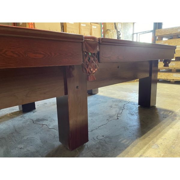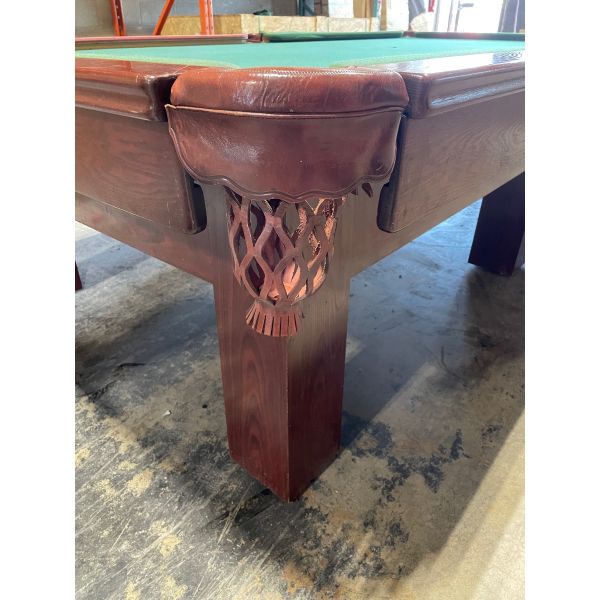 Made with solid Oak top and side rails and engineered wood, genuine leather pockets, 1” thick slate and brand new rail rubber.